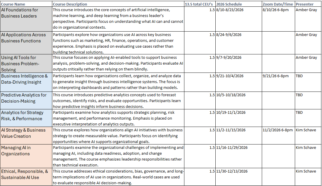 Course: CEB 0302 | Artificial Intelligence & Business Analytics Certificate-Gateway Program | 13.5 CEUs